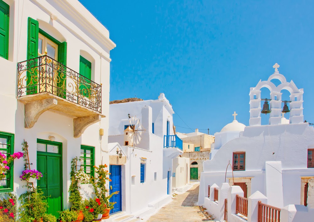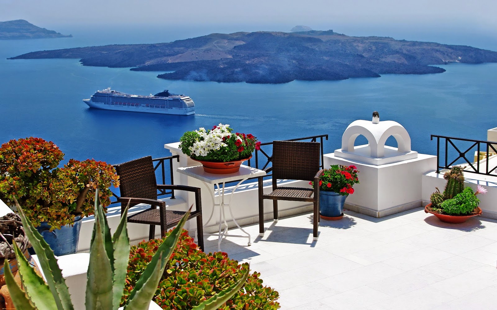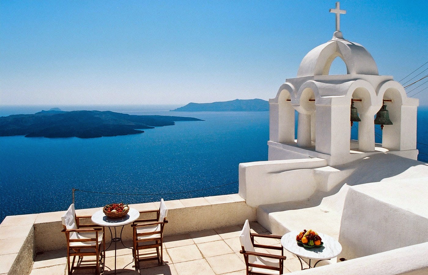 Santorini is an island in the southern Aegean Sea, about 120 miles southeast of Greece’s mainland. It was was named by the Latin Empire in the thirteenth century, and is a reference to Saint Irene, from the name of the old cathedral in the village of Perissa. Before then, it was known as Kallístē “the most beautiful one” or Thēra. The name Thera was revived in the nineteenth century as the official name of the island and its main city, but the colloquial name Santorini is still in popular use.