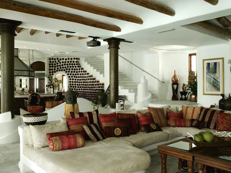 It features 5 bedrooms, 5 full and 2 half bathrooms, open living spaces, high ceilings, covered loggias, rooftop terraces.