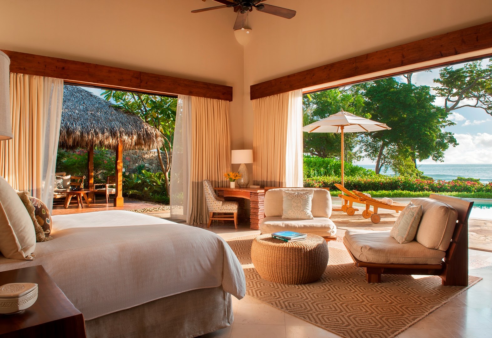 Casona Don Carlos- The jewel in the crown, embodying the essence of Mukul features an expansive indoor-outdoor living area with a soaring 80-foot-high palapa ceiling, six bedroom suites, a wrap-around stone terrace and a large private swimming pool.